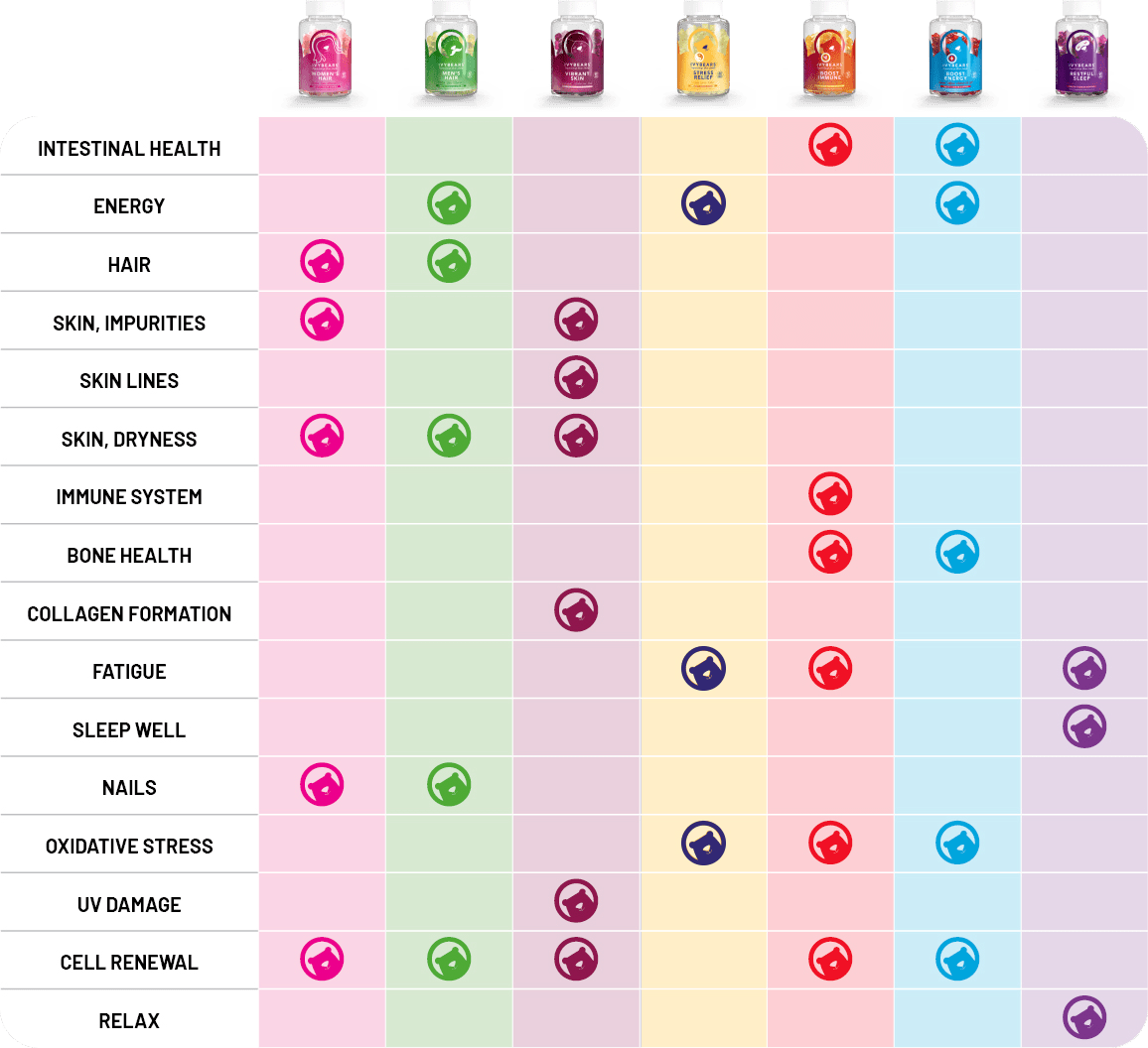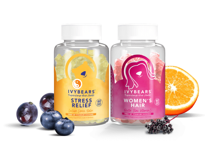 Fruity gummy bears that make our hair shiny or our skin even more radiant? They exist! There are a lot of vitamins and nutrients in the sweet and tasty bears from 𝗜𝗩𝗬𝗕𝗘𝗔𝗥𝗦 ®. With regular use, 𝗜𝗩𝗬𝗕𝗘𝗔𝗥𝗦 ® vitamin bears make your hair more voluminous and your complexion more radiant. In addition, the high-dose vitamin complexes are now also vegan*, gluten-free, contain no artificial flavors, are free of titanium dioxide – and of course 100% Made in Germany.